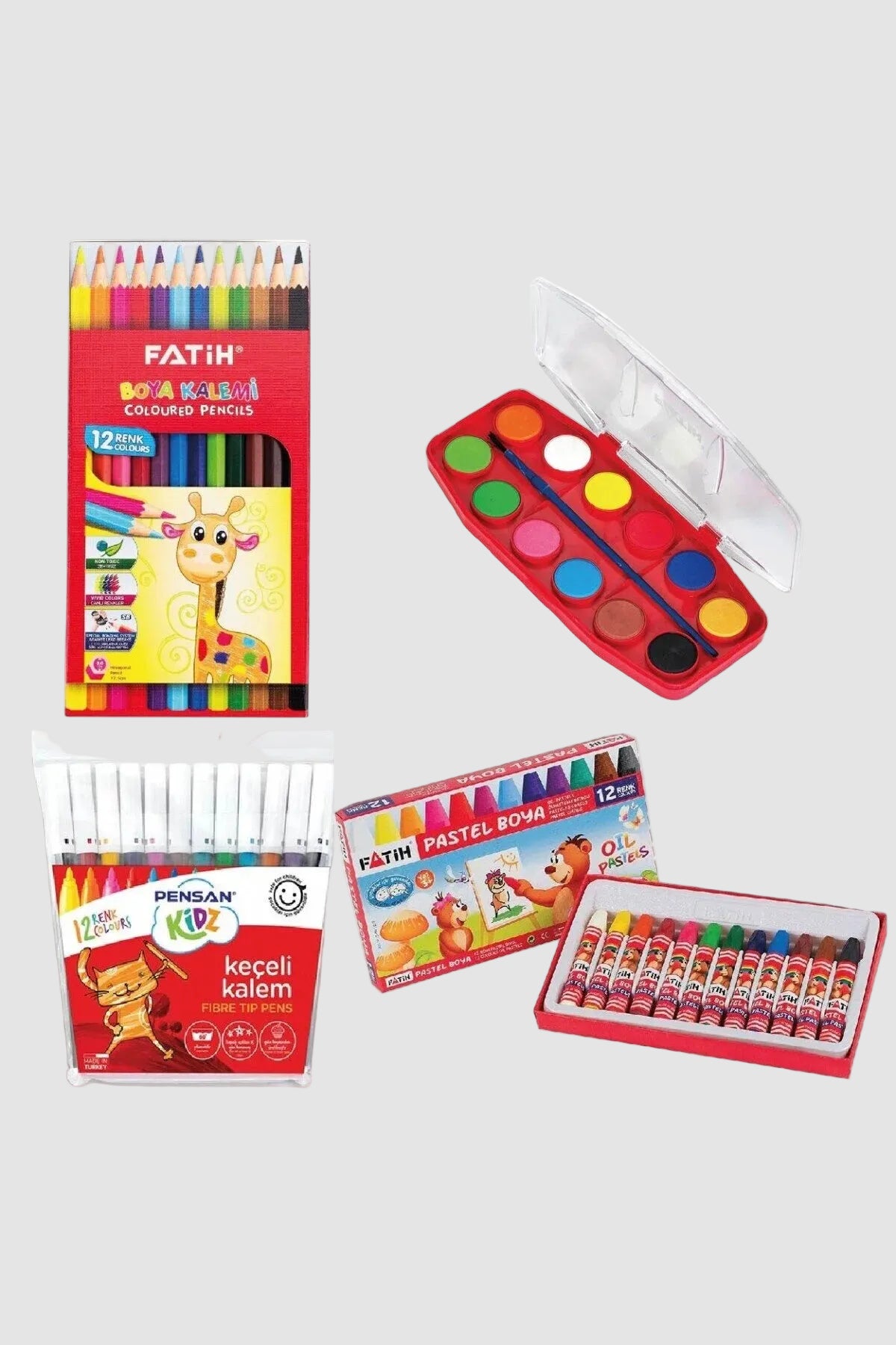 Fatih 4'lü Okul Boya Seti - Keçeli, Kuru, Pastel ve Sulu Boya Paket