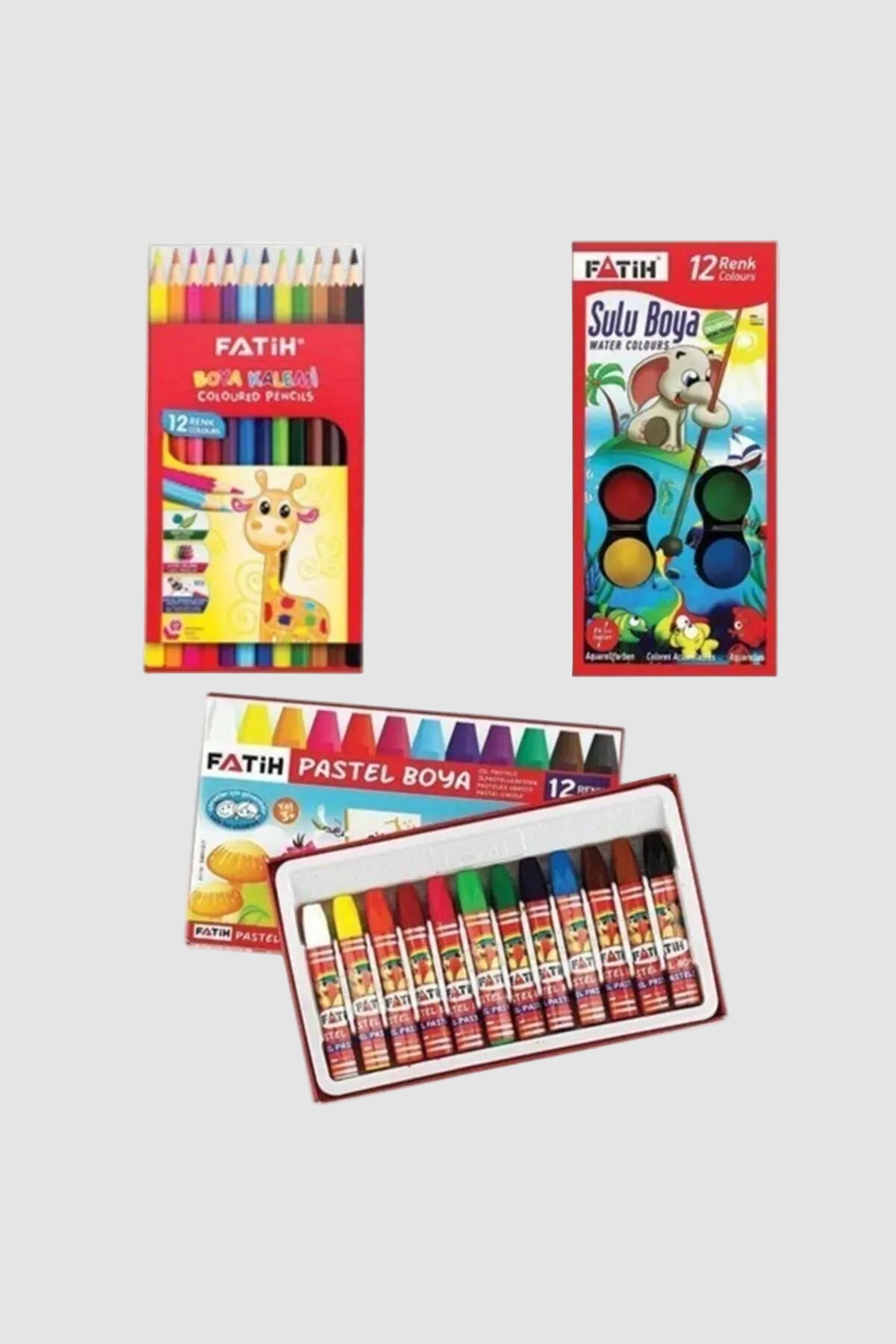 Fatih Okul 3'lü Boya Seti - 12'li Kuru, Pastel ve Sulu Boya Paket