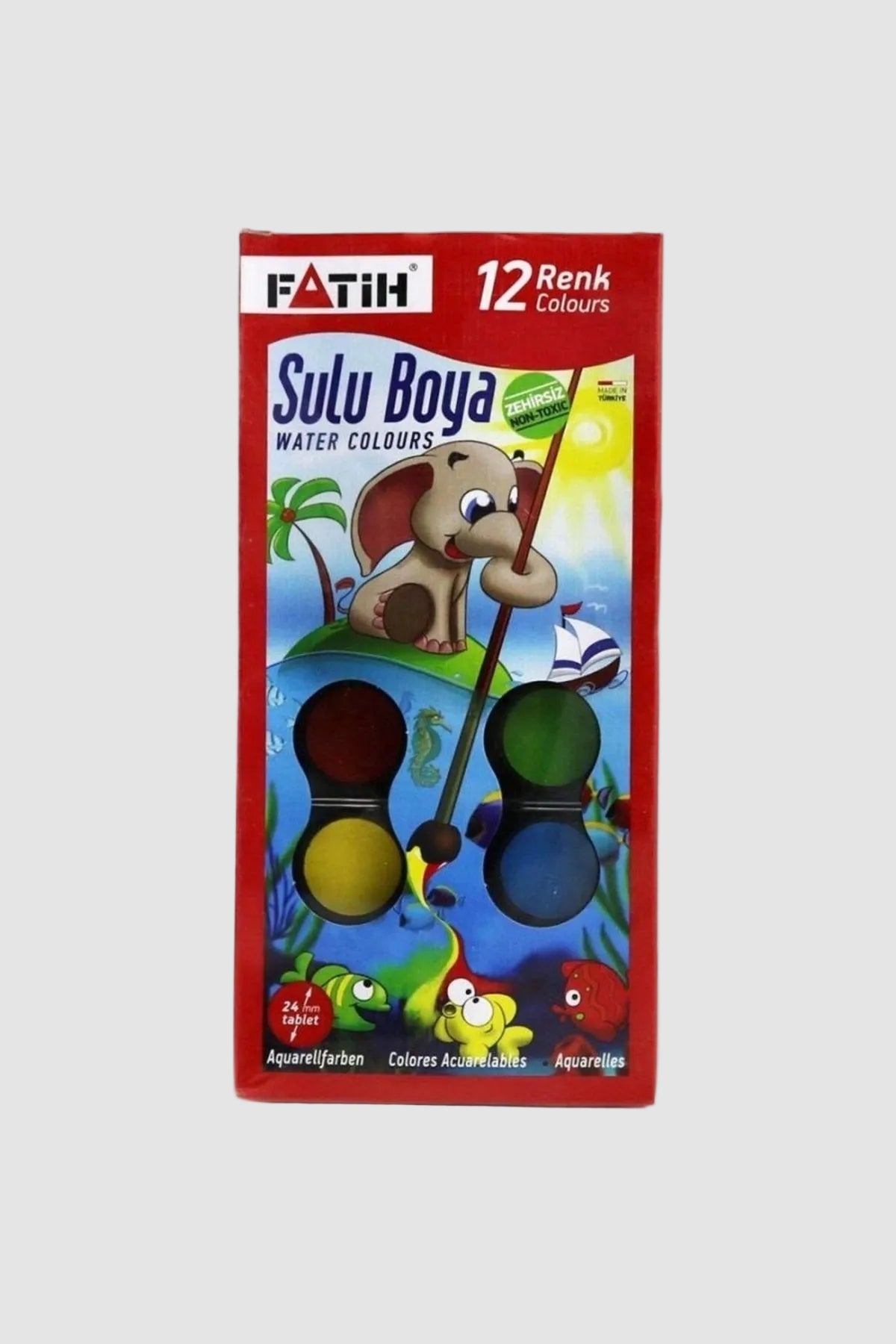 Fatih Sulu Boya Jumbo 12 Renk - Büyük Tablet Boya ve Fırça Seti