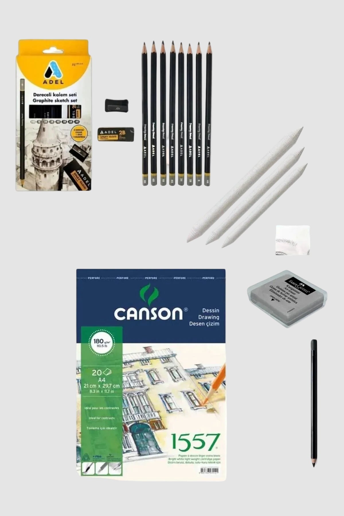 Canson 1557 180 GR 20 Yaprak Eskiz Defterli Karakalem Çizim Seti