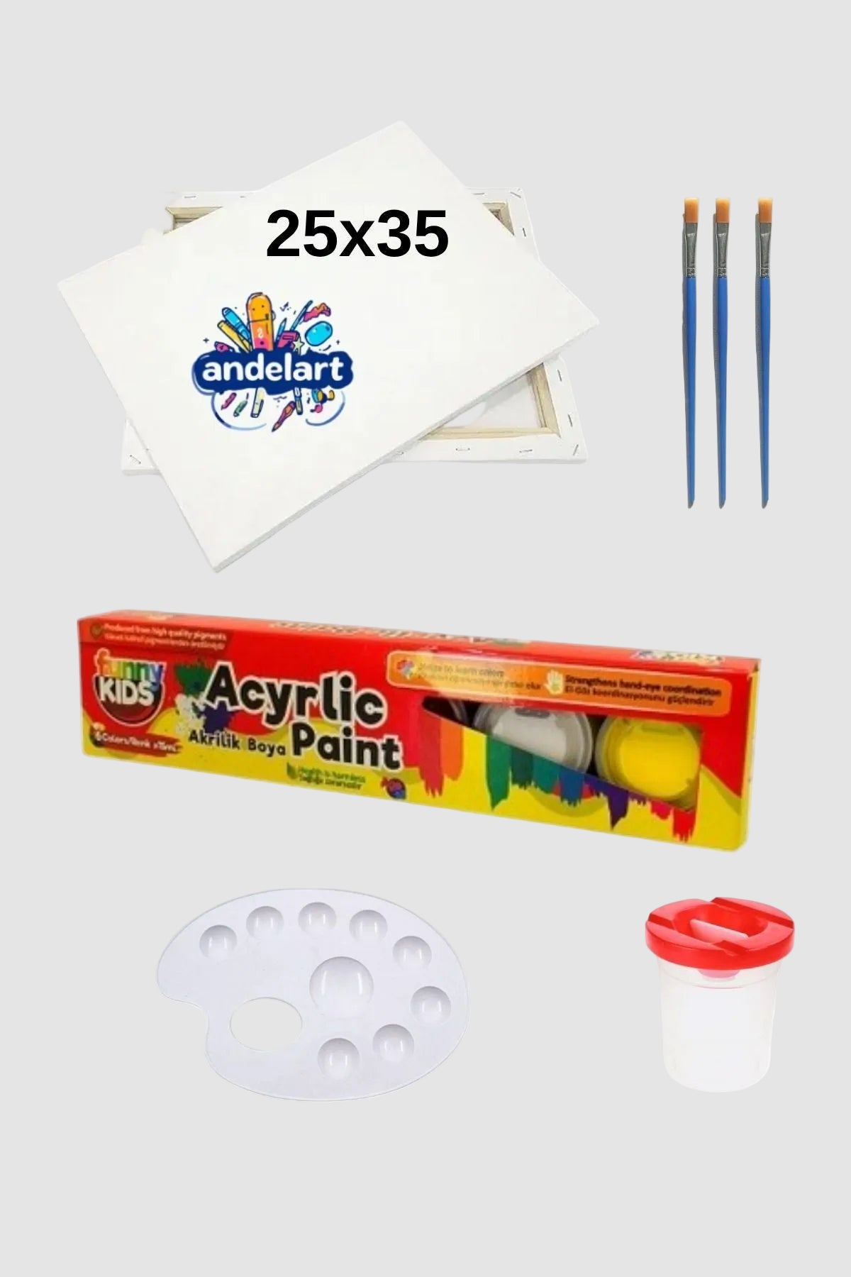25x35 Tuval 6 Renk Akrilik Boya Fırça Palet Resim Seti