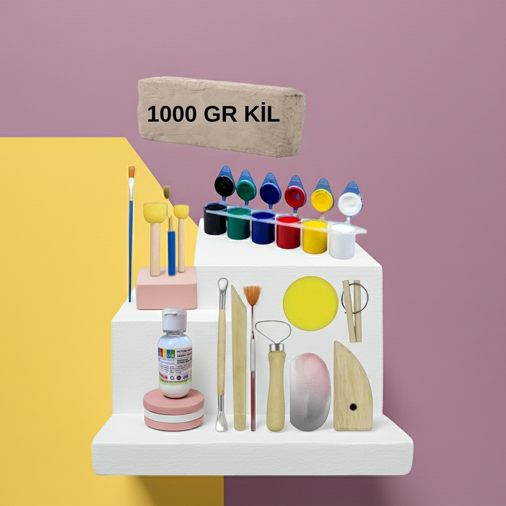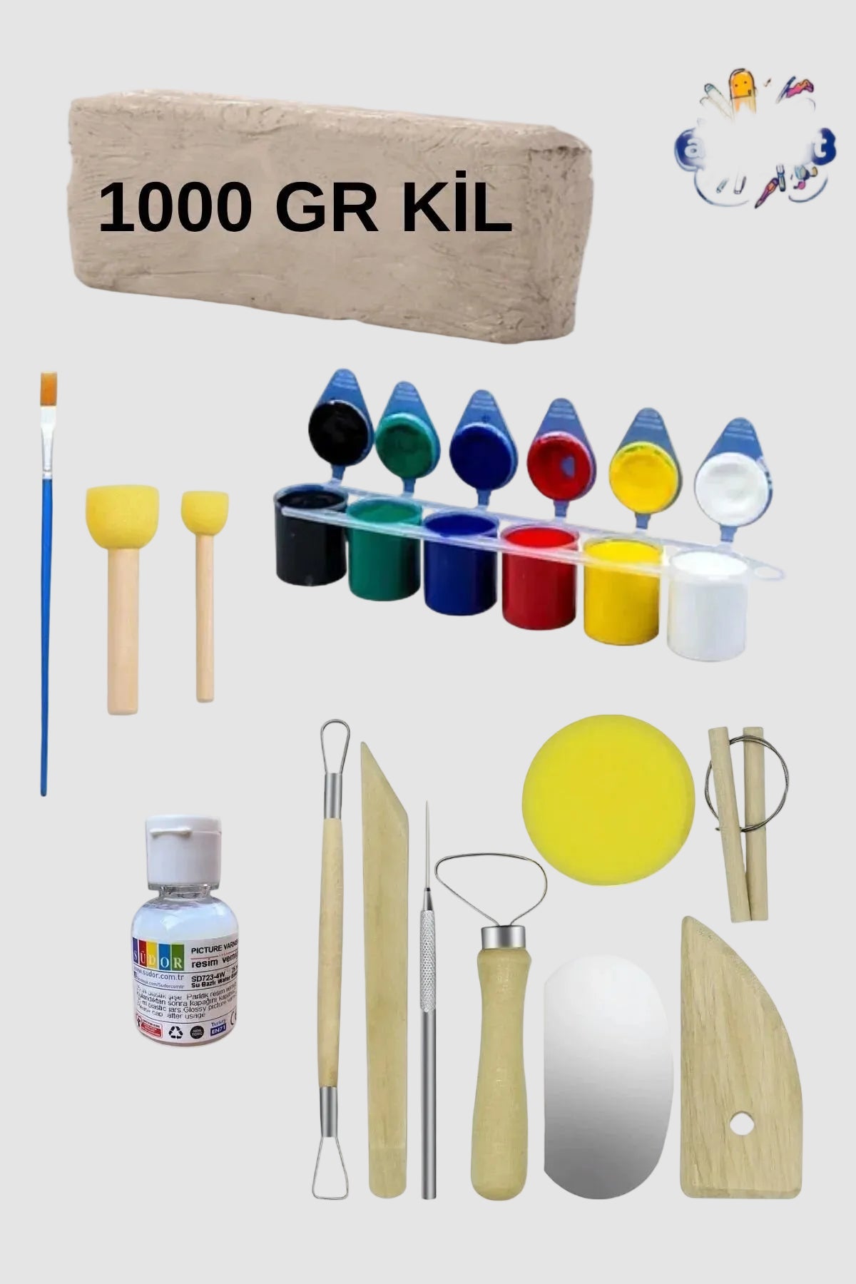 1 Kg Seramik Hamuru ve 8'li Kil Başlangıç Seti