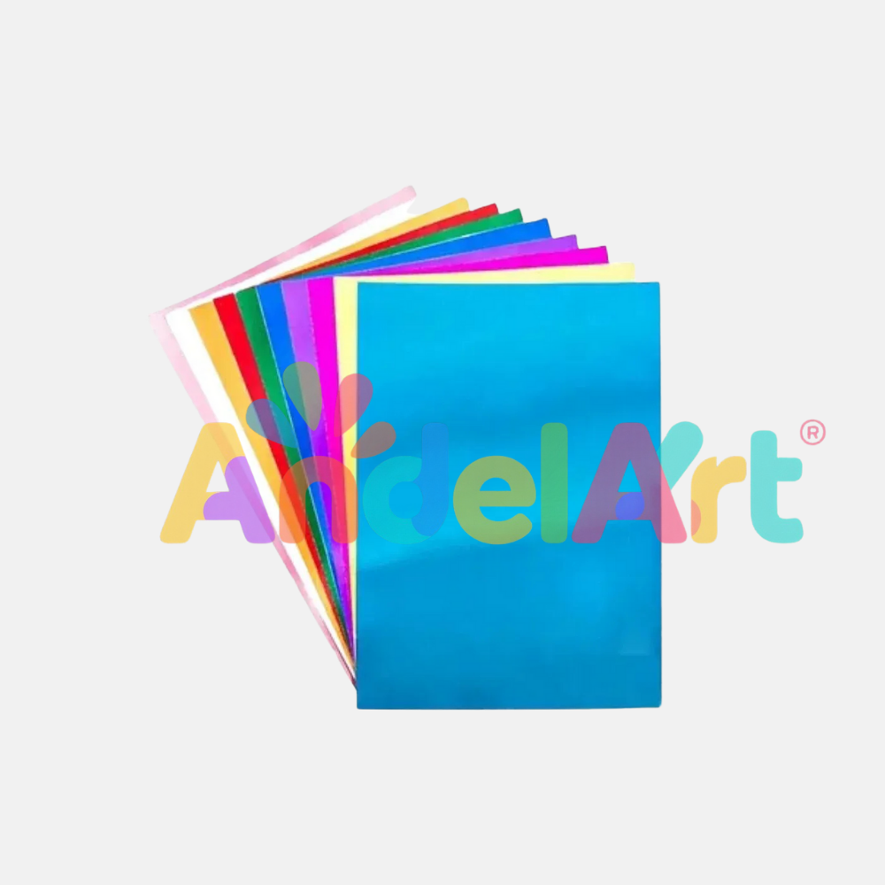 A4 Metalik Aynalı Fon Kartonu 10 Renk 1 Paket - Pırıltılı Folyo