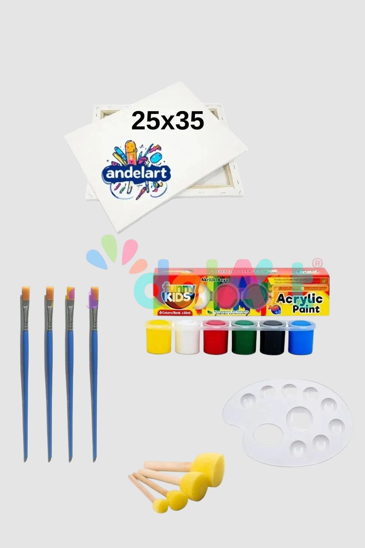 Akrilik Boya Başlangıç Seti - Çocuk Boyama Fırça Tuval Full Set
