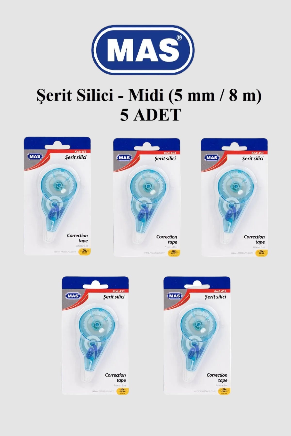 Mas Şerit Silici 5mm x 8 Metre 5'li Ekonomik Set