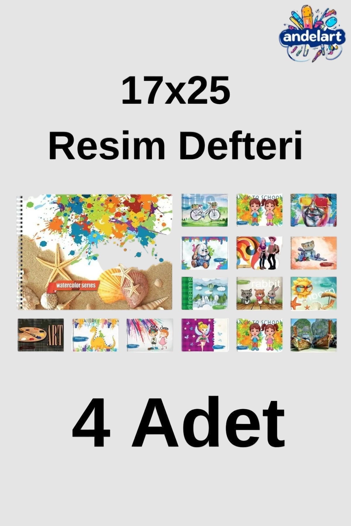 Resim Defteri Spiralli Karton Kapak 15 Yaprak 17x25 cm 4 Adet