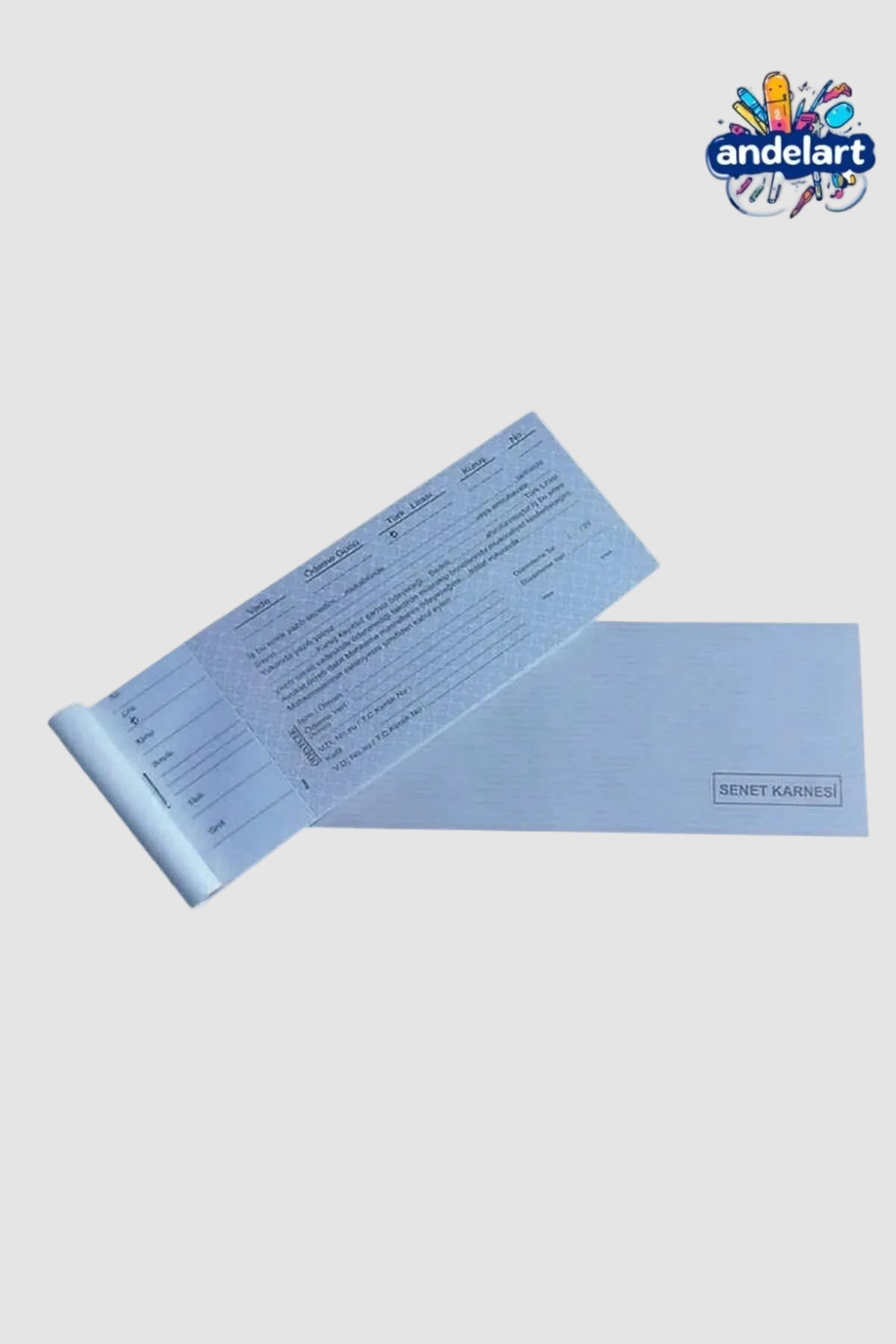 Ticari işlemler için: 50 Sayfalı Senet Karnesi. Standart formata uygun, koçanlı senet defteri. Alacak-verecek takibi ve resmi işlemler için kullanılır.